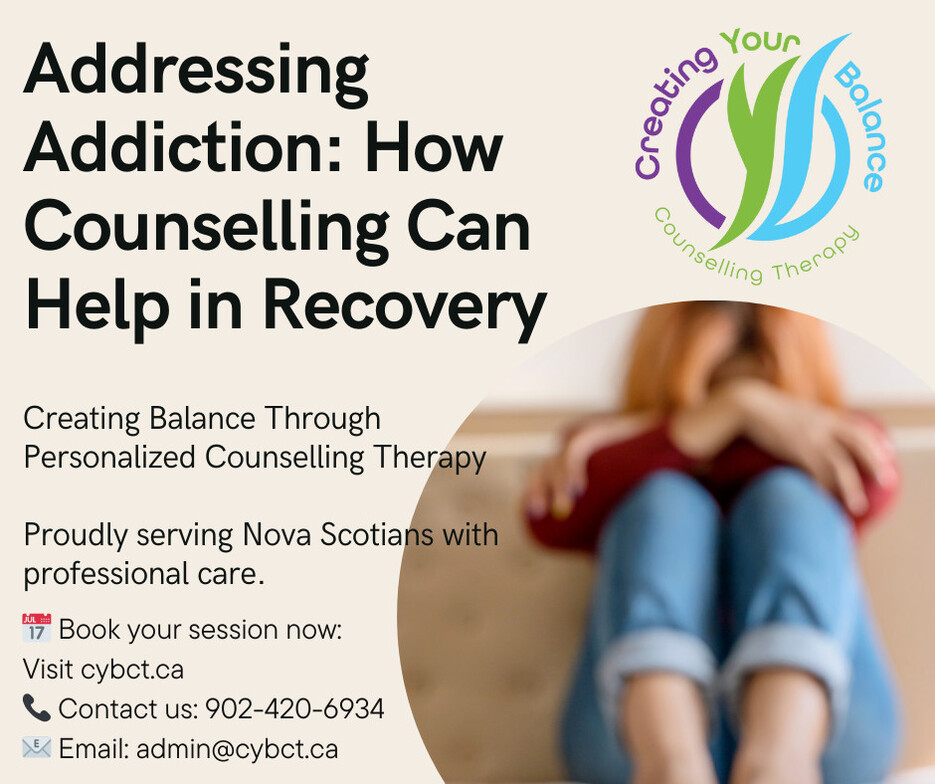 At Creating Your Balance Counselling Therapy (CYBCT) in Dartmouth, Nova Scotia, we offer compassionate, evidence‑informed counselling to help individuals navigate addiction and reclaim a sense of balance. Our approach addresses the emotional, psychological, and behavioural aspects of addiction, giving clients the tools they need for meaningful, lasting change.